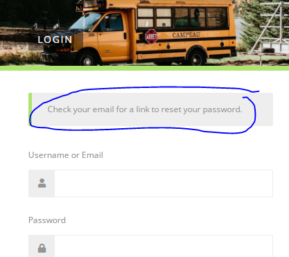 Jika alamat email Anda benar, maka akan muncul informasi sebagai berikut, yang menginformasikan agar Anda membuka email untuk melakukan reset password.
