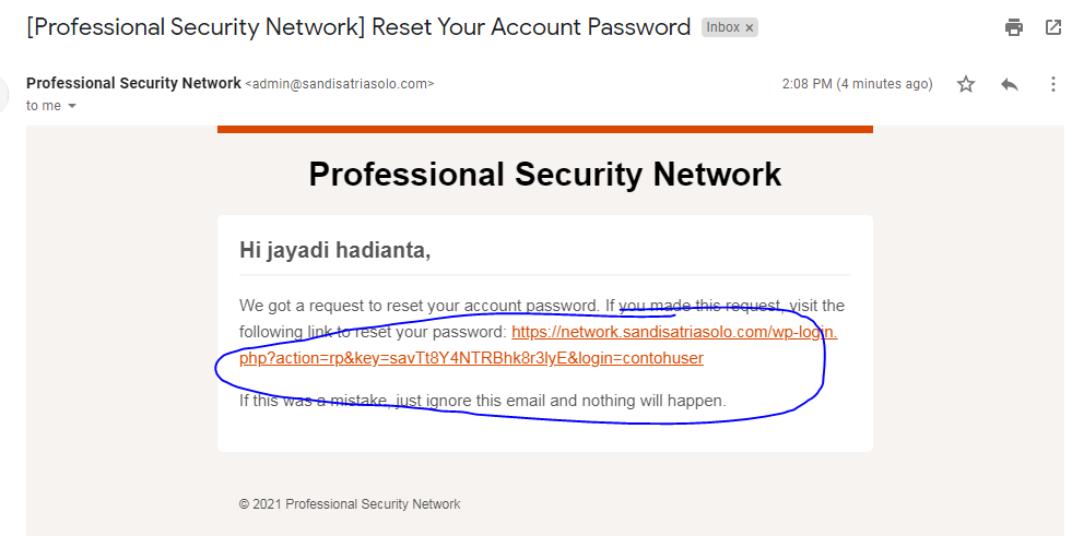 Email reset password akan muncul seperti di bawah ini di akun Inbox akun email Anda. Silakan klik link yang ada pada email tersebut, seperti pada gambar di bawah ini.