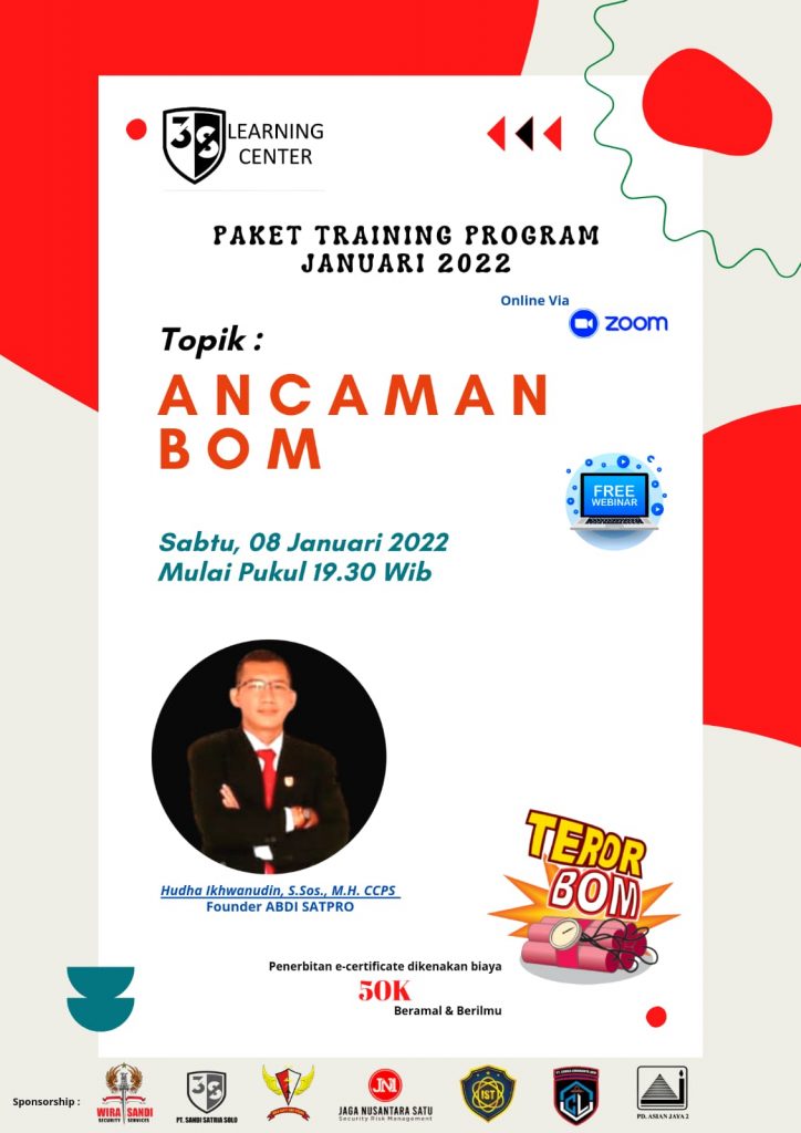 Materi Ancaman Bom yang diharapkan dapat menambah pengetahuan anggota keamanan tentang penanganan teror bom seperti cara pencegahan seluk-beluk masuknya pelaku, ancaman teror melalui telepon serta langkah yang dilakukan, cara mengenali kendaraan yang dicurigai membawa bom dan lain-lain. Dalam kegiatan ini juga dilakukan pengenalan jenis-jenis bahan peledak/bom kepada seluruh brusan keamananyang hadir.